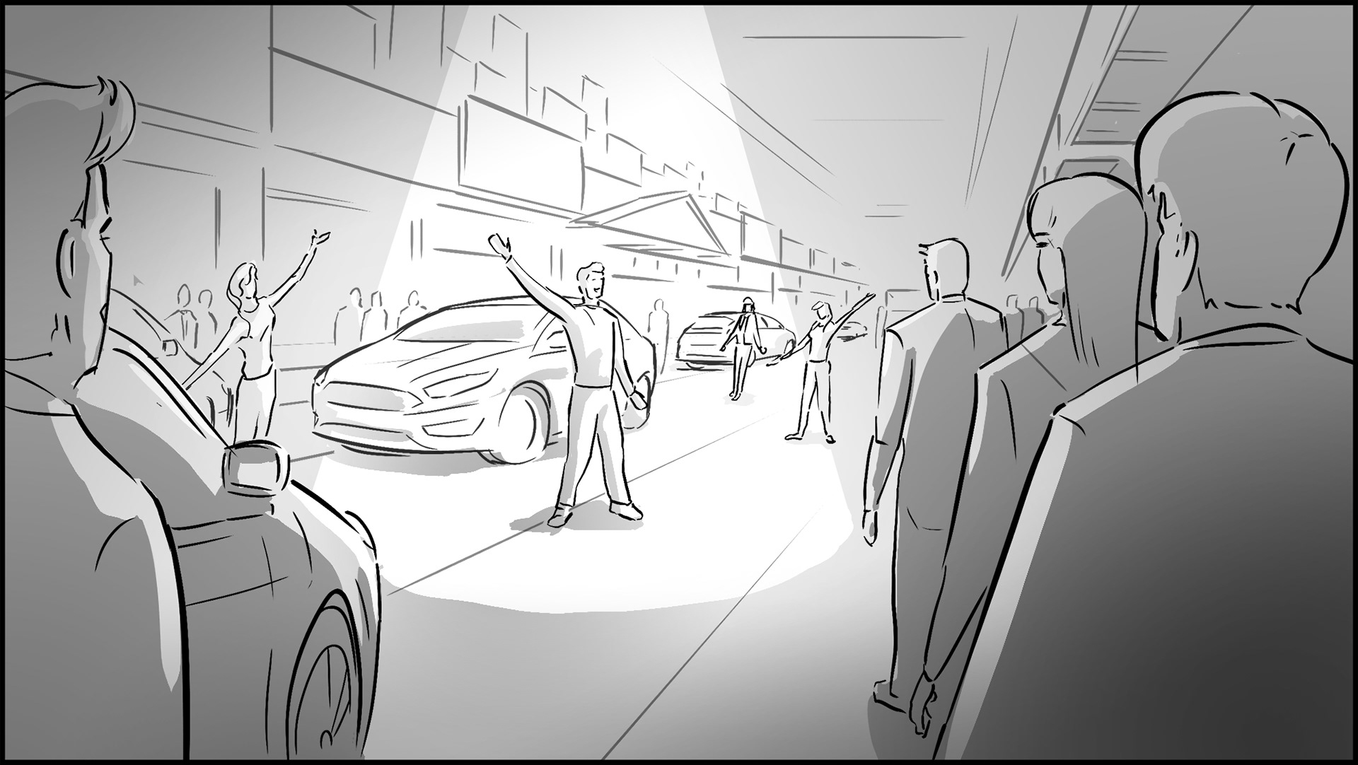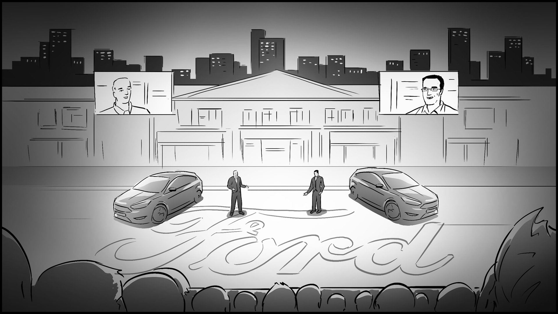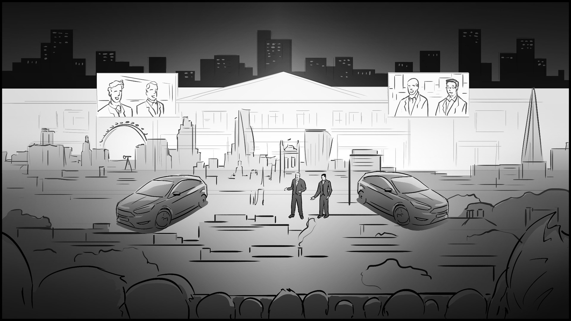 I often work with 'Imagination' delivering storyboards and visualisations for their various high-end events. Here's a sample of frames from when I worked with them on a launch event for Ford.