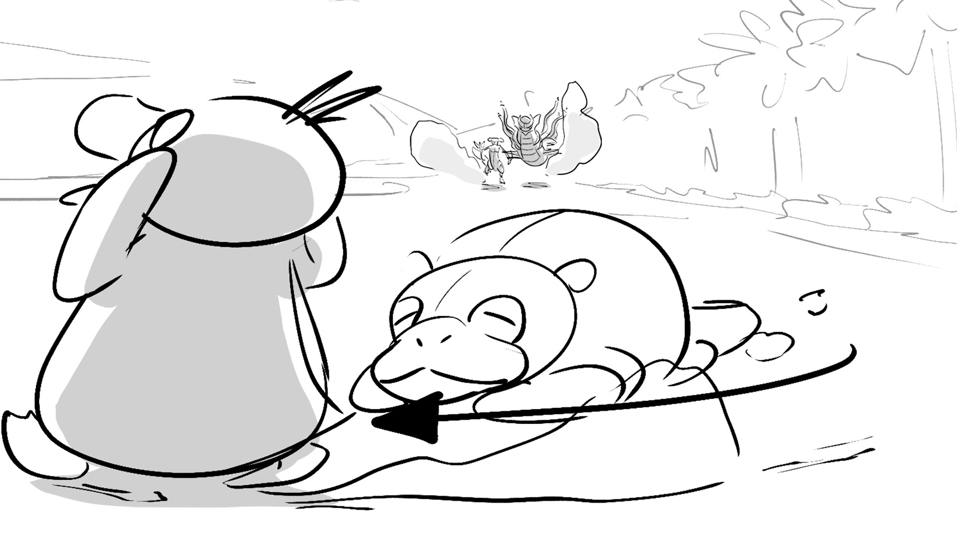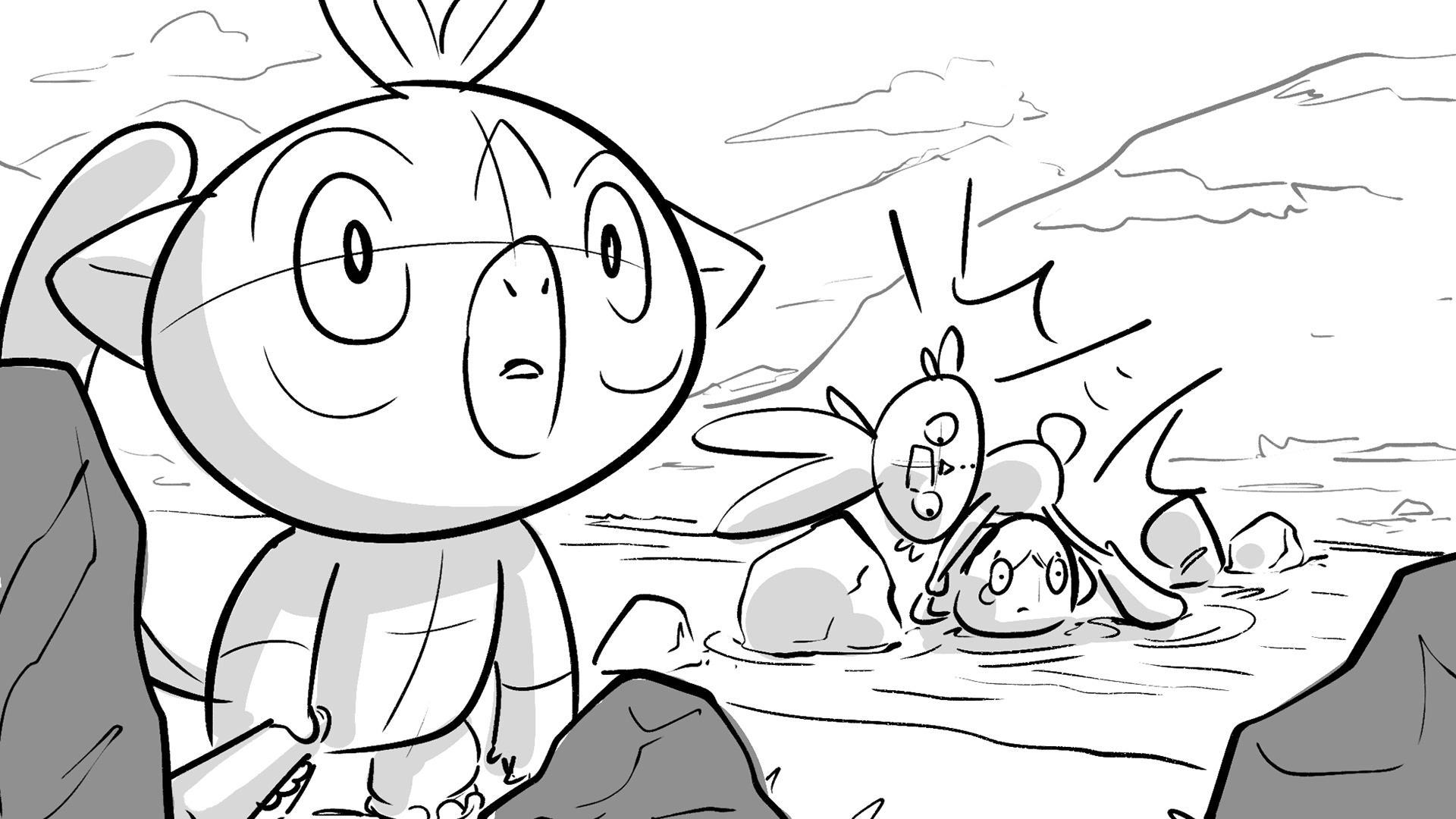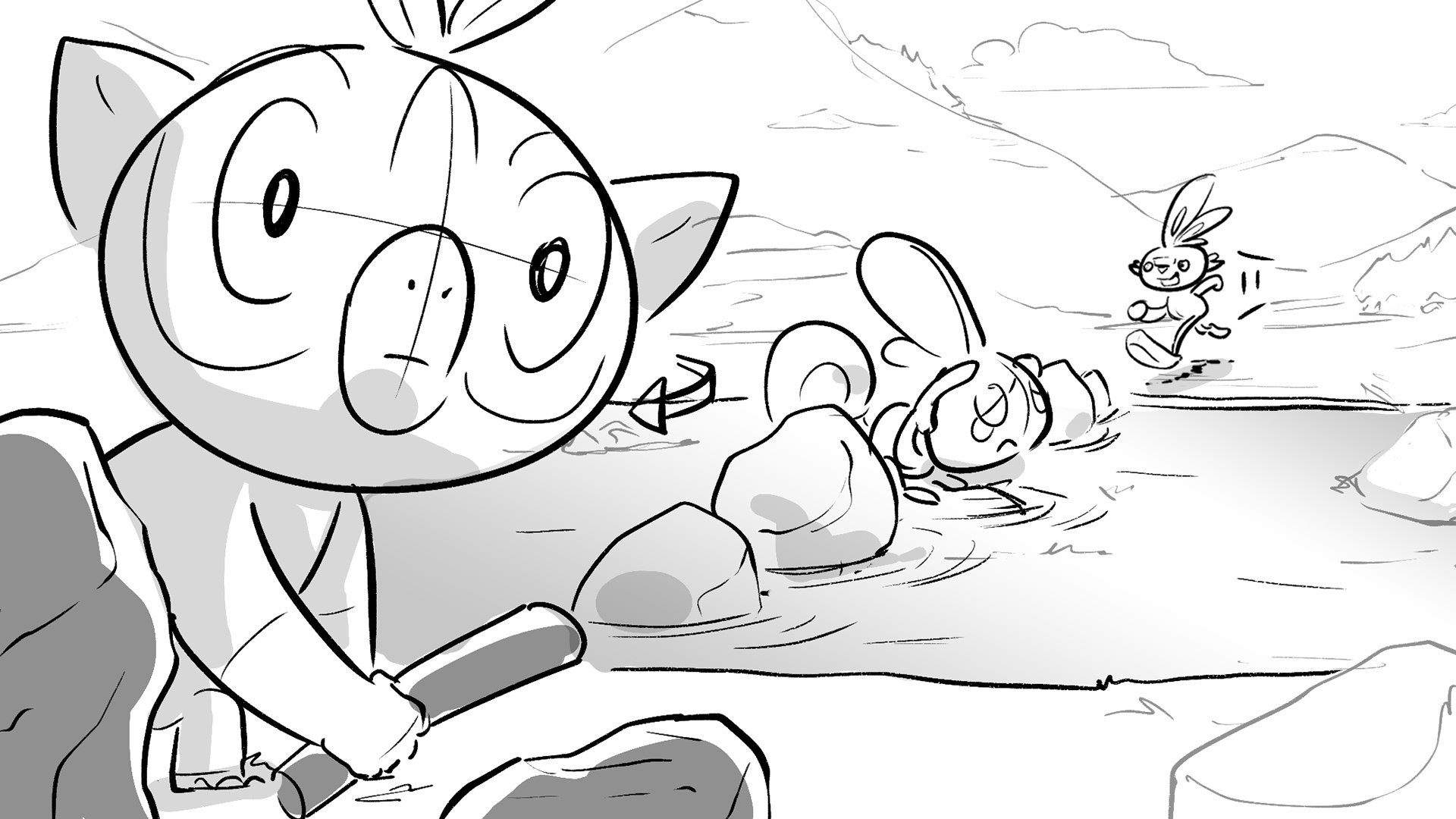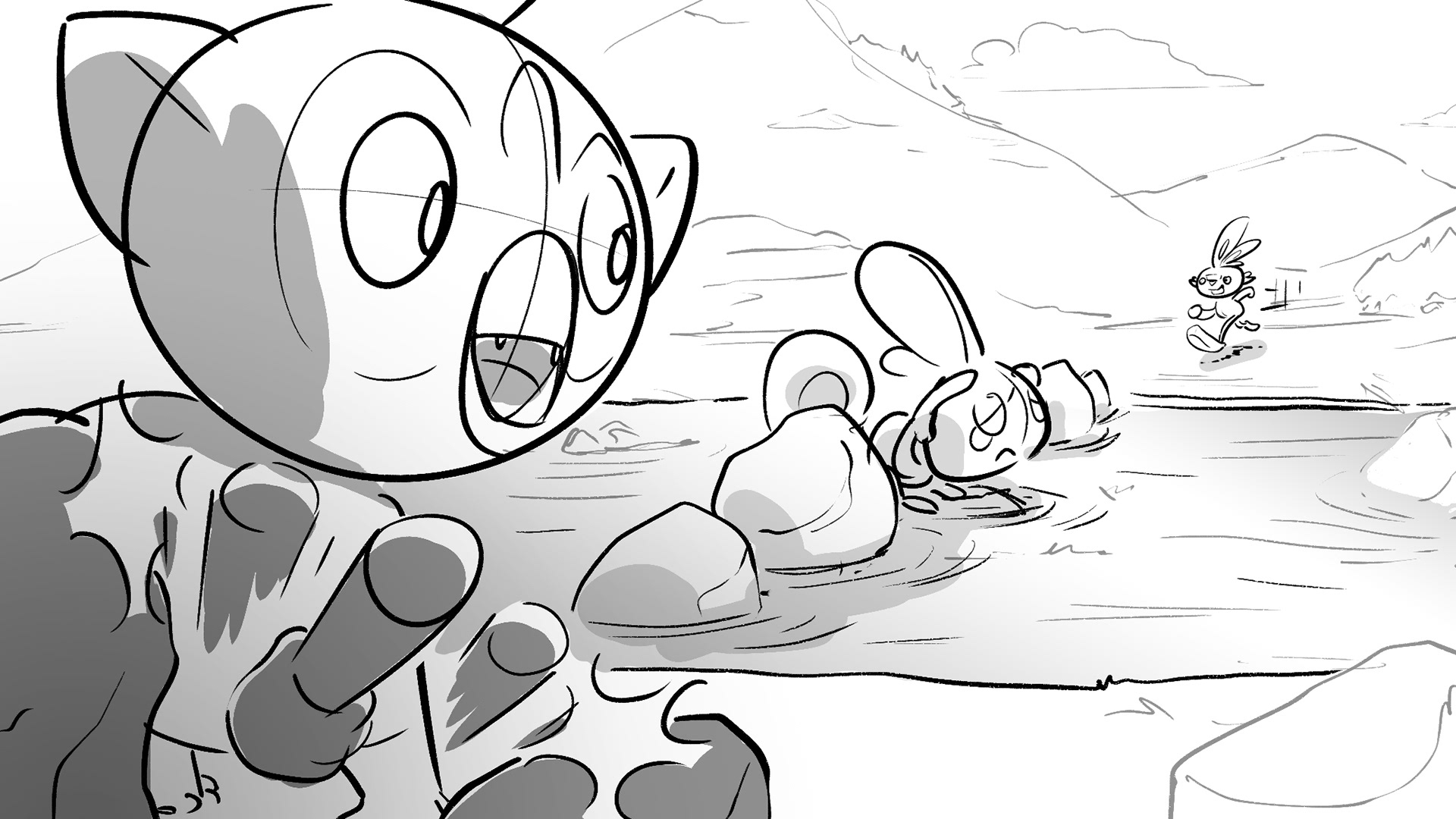 I've worked with Maverick Media to develop creative concepts for Pokémon TVCs. I write the scripts, draw the storyboards, produce animatics and give direction for lighting, music and environments.